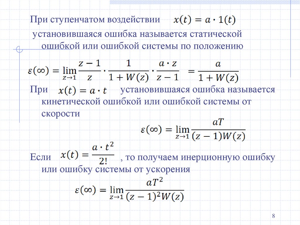 При ступенчатом воздействииустановившаяся ошибка называется статической