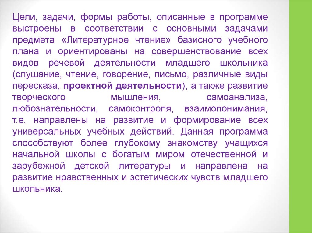 Цели, задачи, формы работы, описанные в программевыстроены в соответствии с основными задачами