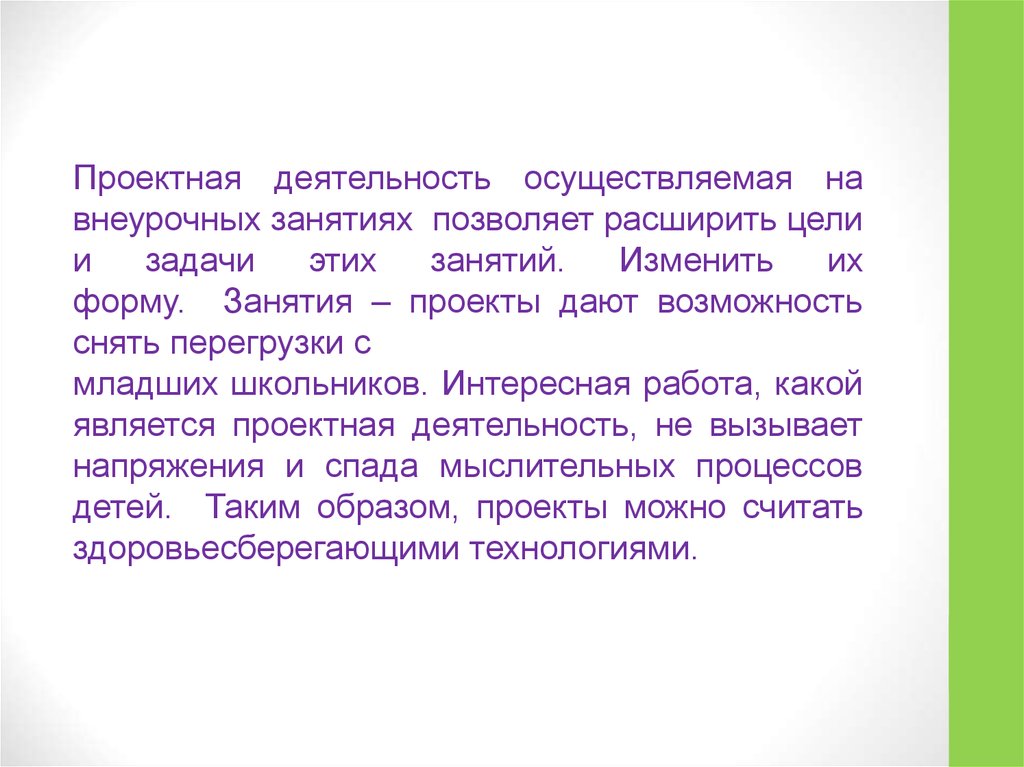 Проектная деятельность осуществляемая навнеурочных занятиях позволяет расширить цели