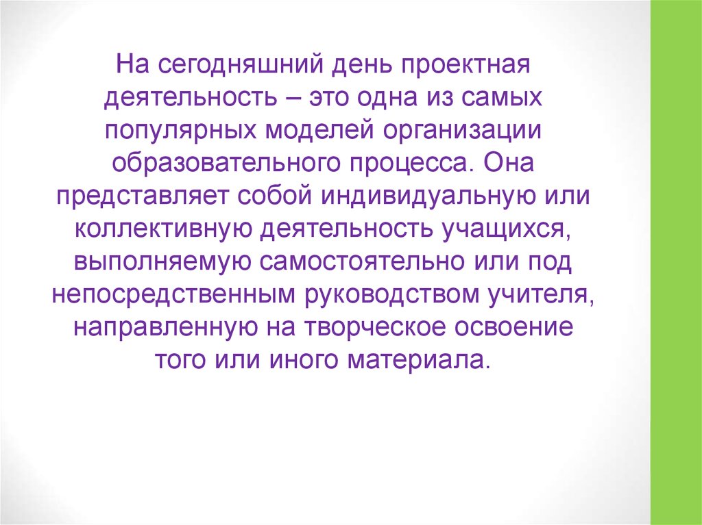 На сегодняшний день проектнаядеятельность – это одна из самых