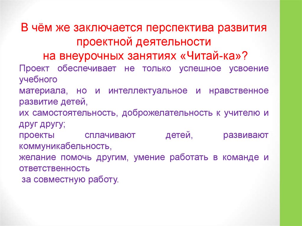 В чём же заключается перспектива развитияпроектной деятельности
