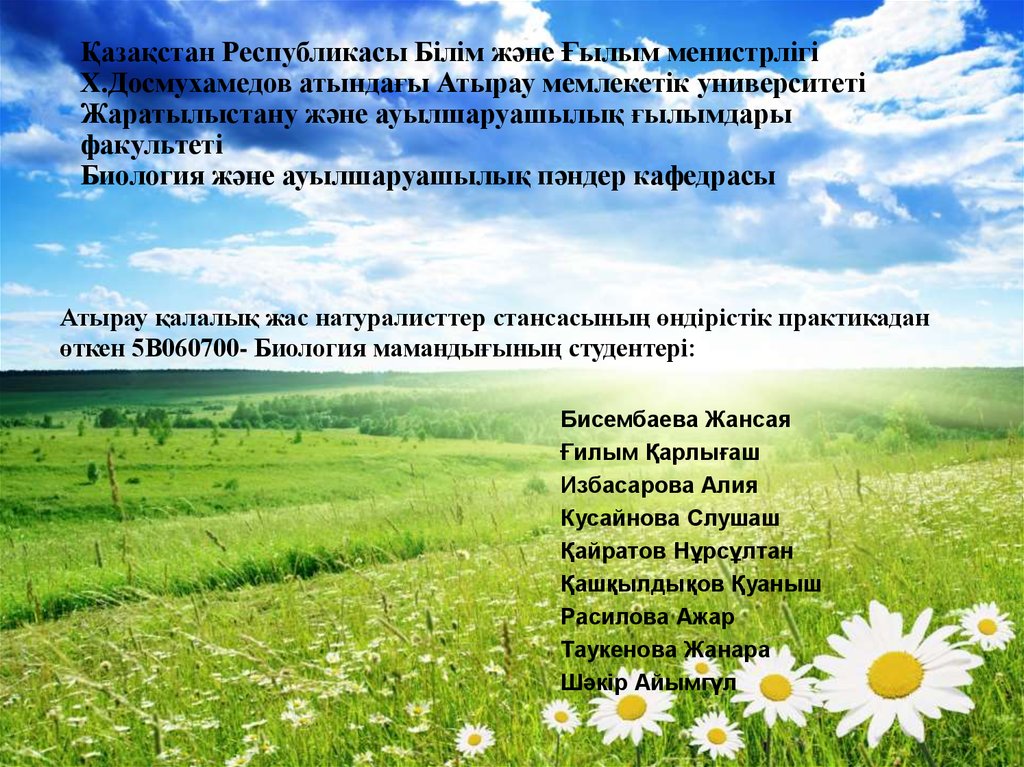 1. Қазақстан Республикасы Білім және Ғылым менистрлігі Х.Досмухамедов атындағы Атырау мемлекетік университеті Жаратылыстану және ауылшару