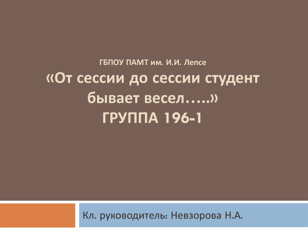 ГБПОУ ПАМТ им. И.И. Лепсе«От сессии до сессии студент