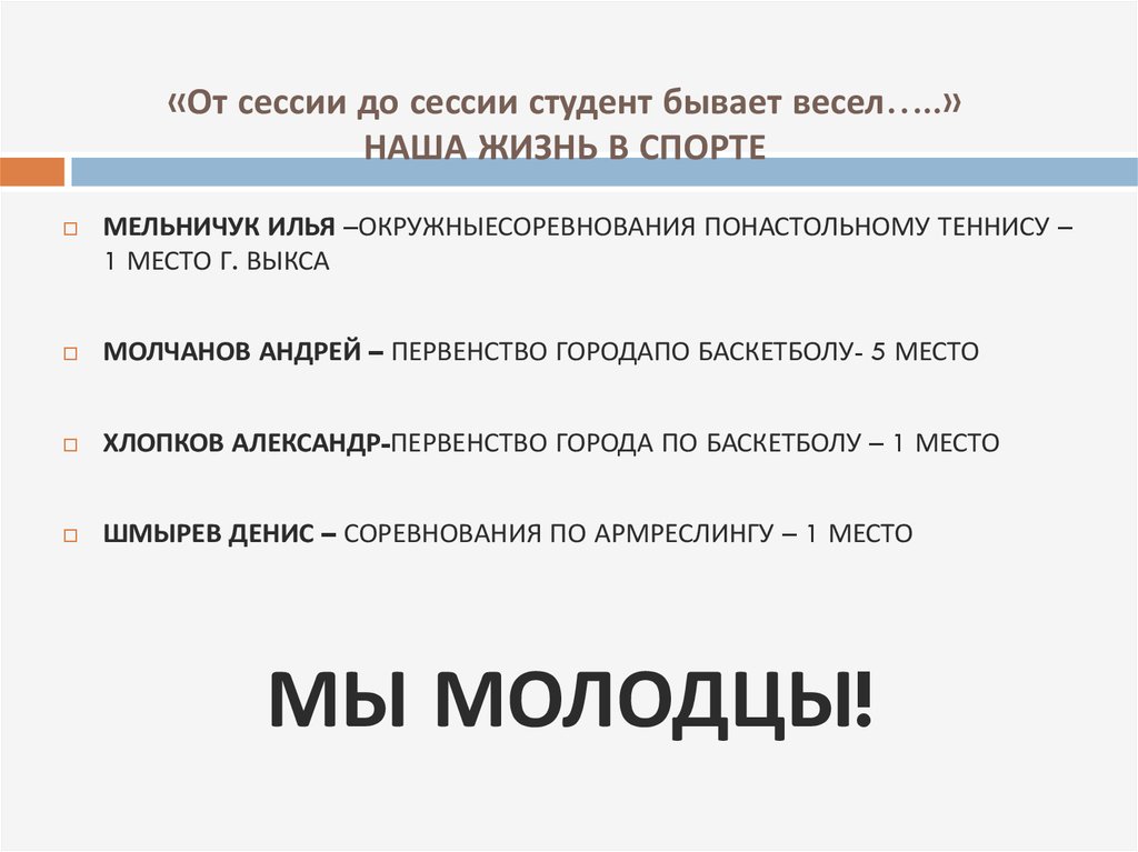 «От сессии до сессии студент бывает весел…..»НАША ЖИЗНЬ В СПОРТЕ