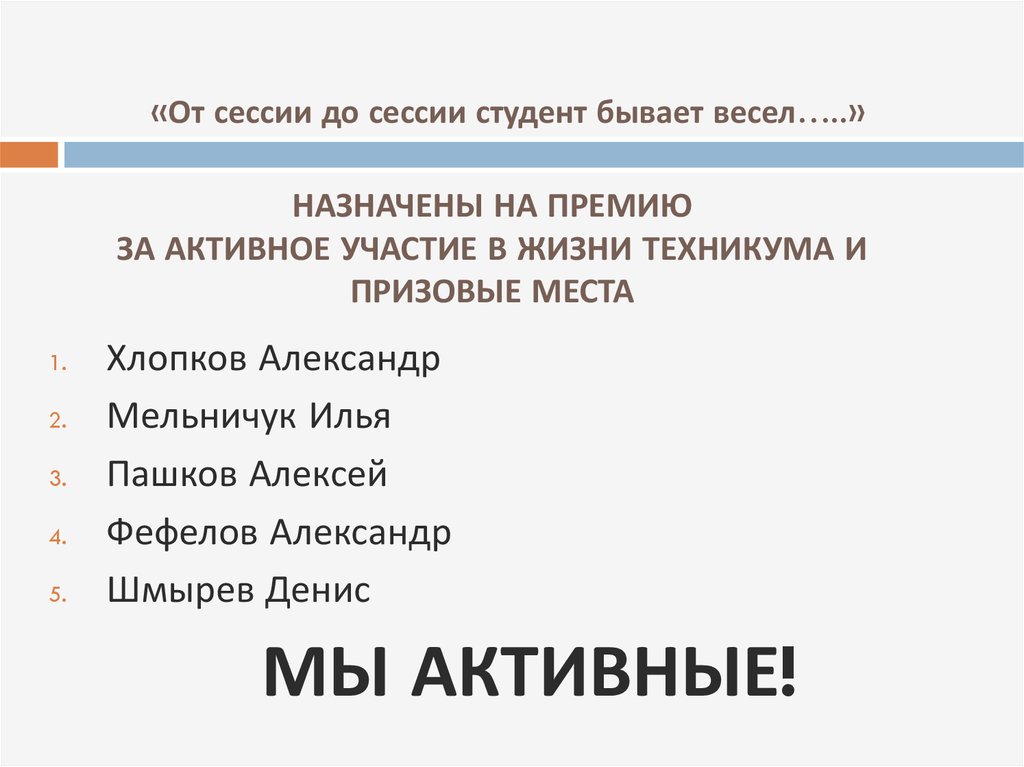 «От сессии до сессии студент бывает весел…..»НАЗНАЧЕНЫ НА ПРЕМИЮ