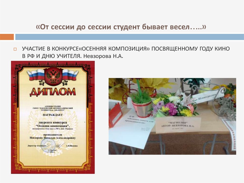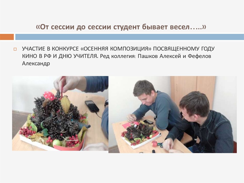 «От сессии до сессии студент бывает весел…..»УЧАСТИЕ В КОНКУРСЕ «ОСЕННЯЯ КОМПОЗИЦИЯ» ПОСВЯЩЕННОМУ ГОДУ