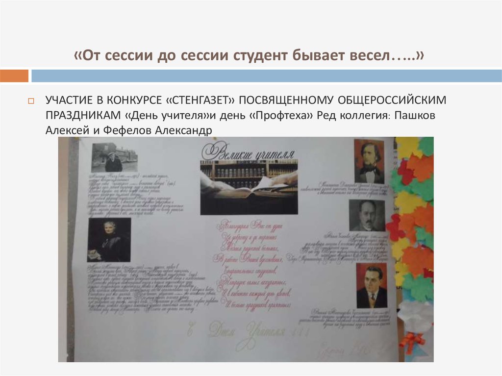 «От сессии до сессии студент бывает весел…..»УЧАСТИЕ В КОНКУРСЕ «СТЕНГАЗЕТ» ПОСВЯЩЕННОМУ ОБЩЕРОССИЙСКИМ