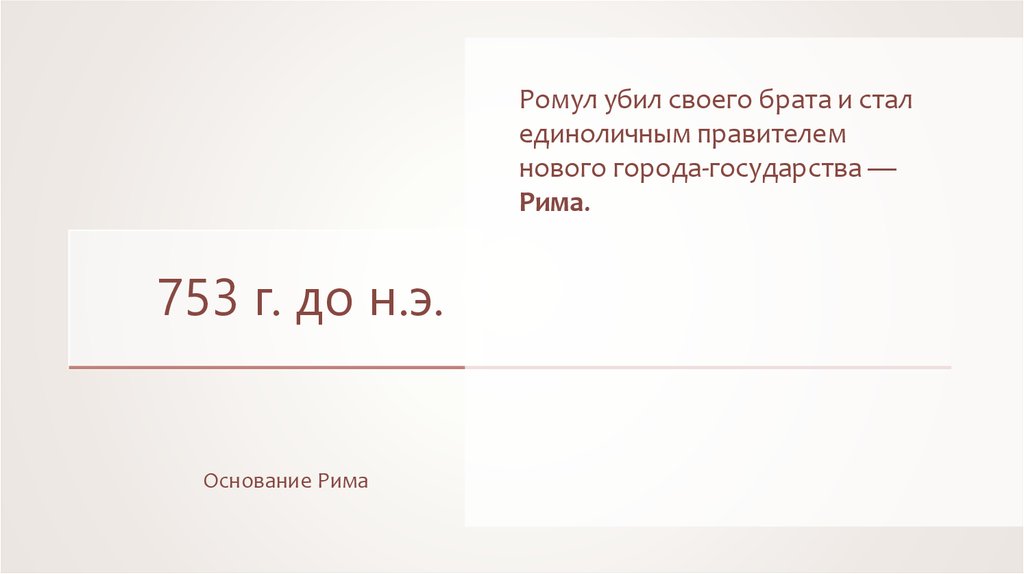 Ромул убил своего брата и сталединоличным правителем