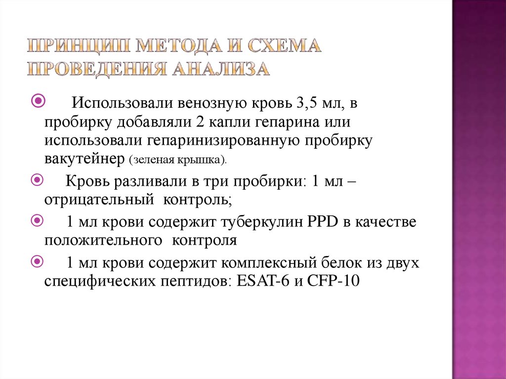 Использовали венозную кровь 3,5 мл, впробирку добавляли 2 капли гепарина или
