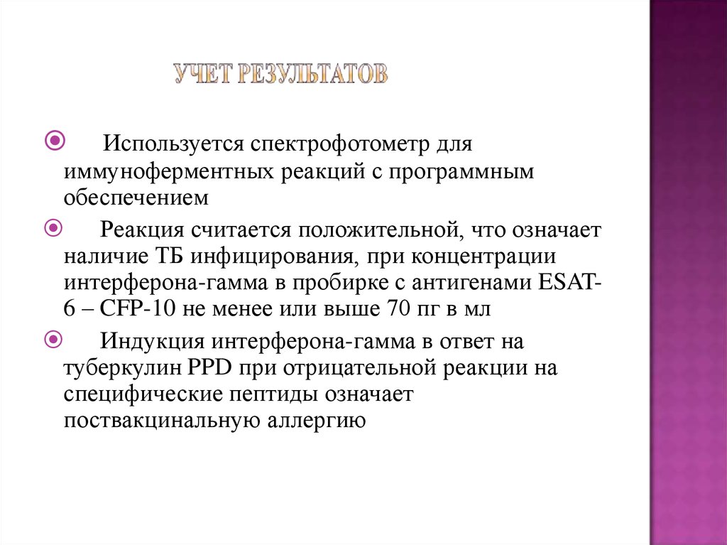 интерферона-гамма в пробирке с антигенами ESAT6 – CFP-10 не менее или выше 70 пг в мл