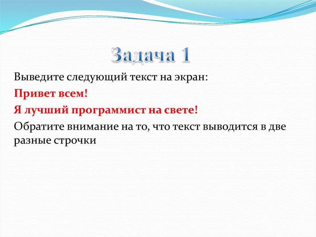 Выведите следующий текст на экран:Привет всем!