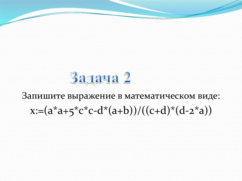 Запишите выражение в математическом виде:x:=(a*a+5*c*c-d*(a+b))/((c+d)*(d-2*a))