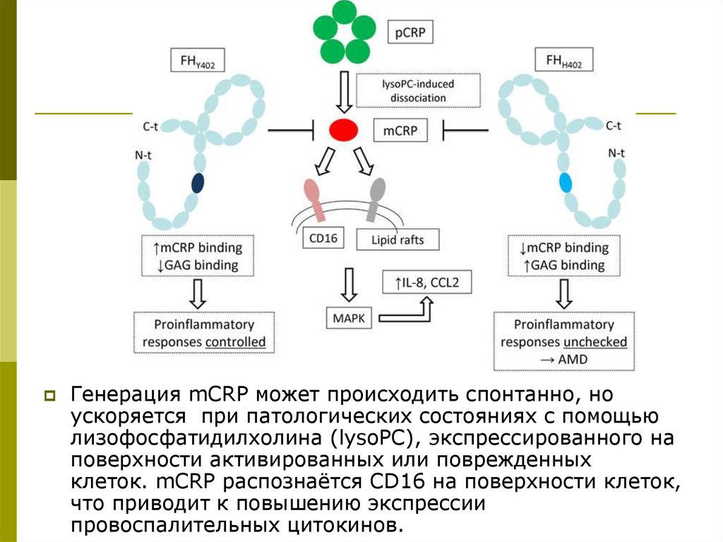 клеток. mCRP распознаётся CD16 на поверхности клеток,