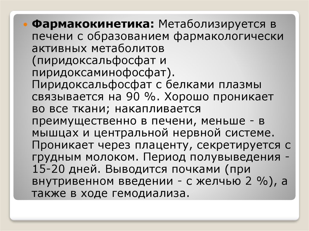 Фармакодинамика: Витамин В6 присутствует вомногих продуктах в виде пиридоксина,