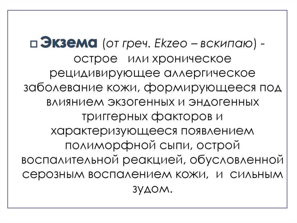 (от греч. Ekzeо – вскипаю) острое или хроническоерецидивирующее аллергическое