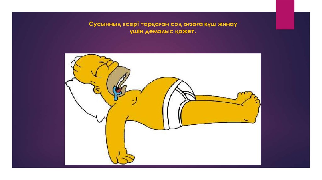 Сусынның әсері тарқаған соң ағзаға күш жинауүшін демалыс қажет.
