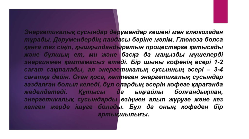 сағатқа дейін. Оған қоса, көптеген энергетикалық сусындар
