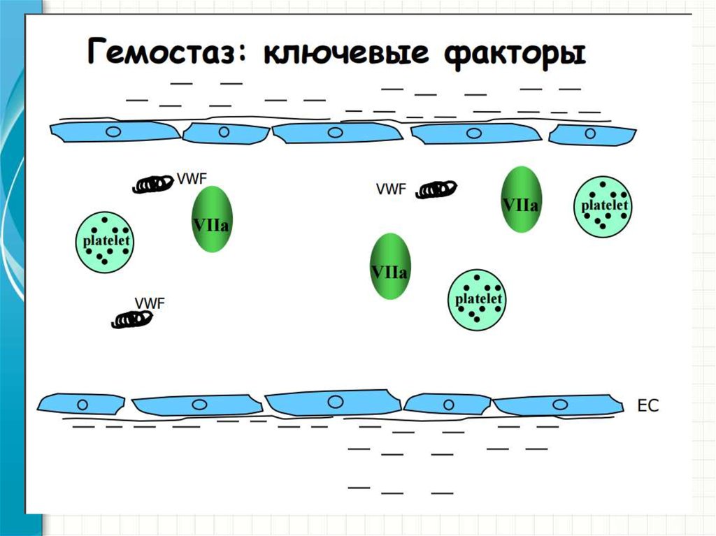 • FVW, тканевой фактор\коллаген,тромбоциты