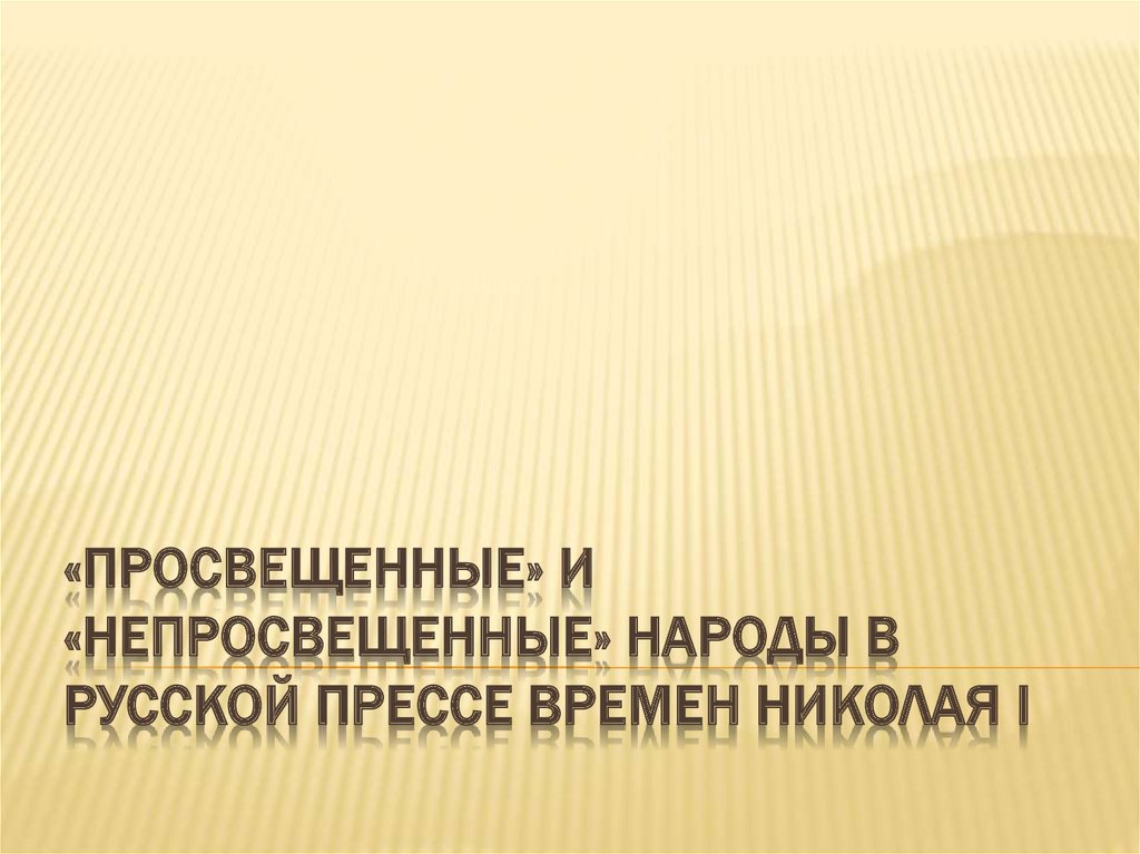 1. «Просвещенные» и «непросвещенные» народы в русской прессе времен Николая I