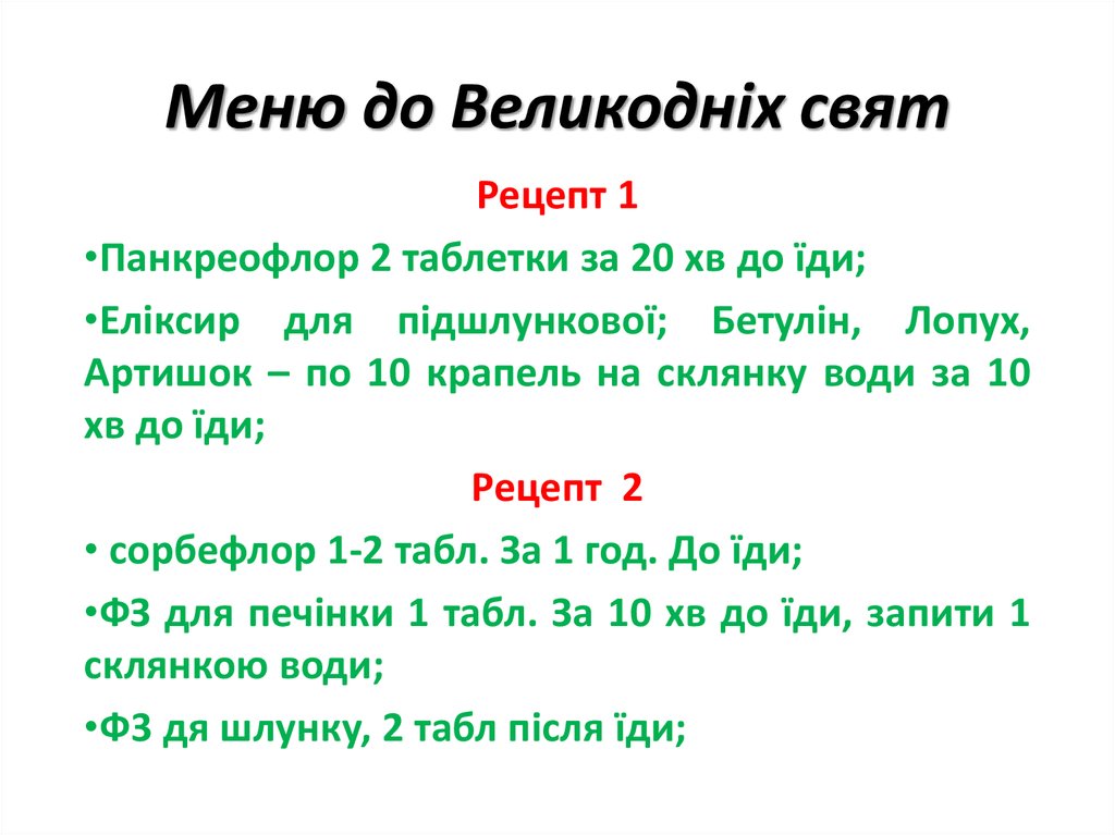 2. Меню до Великодніх свят