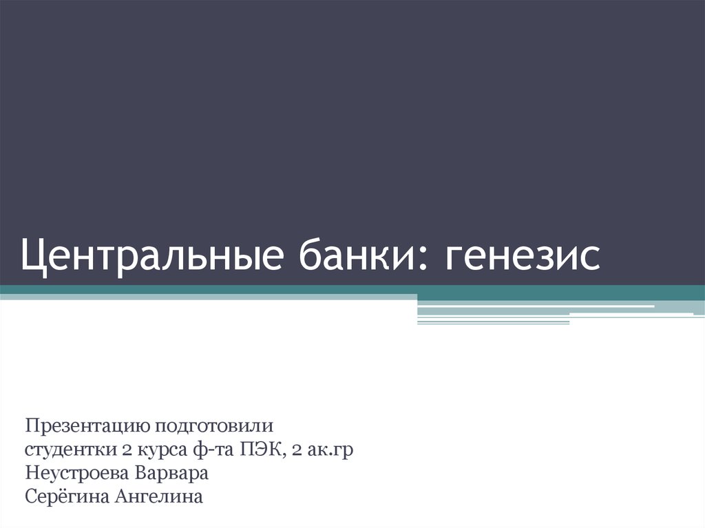 Центральный Банк – основное звено денежнокредитной системы государства, банк, создаваемыйдля регулирования обращающейся денежной массы и