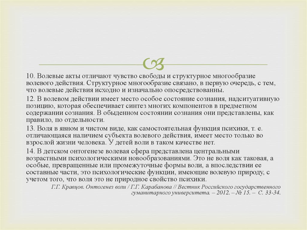 2. Г.Г. Кравцов. Онтогенез воли / Г.Г. Карабанова // Вестник Российского