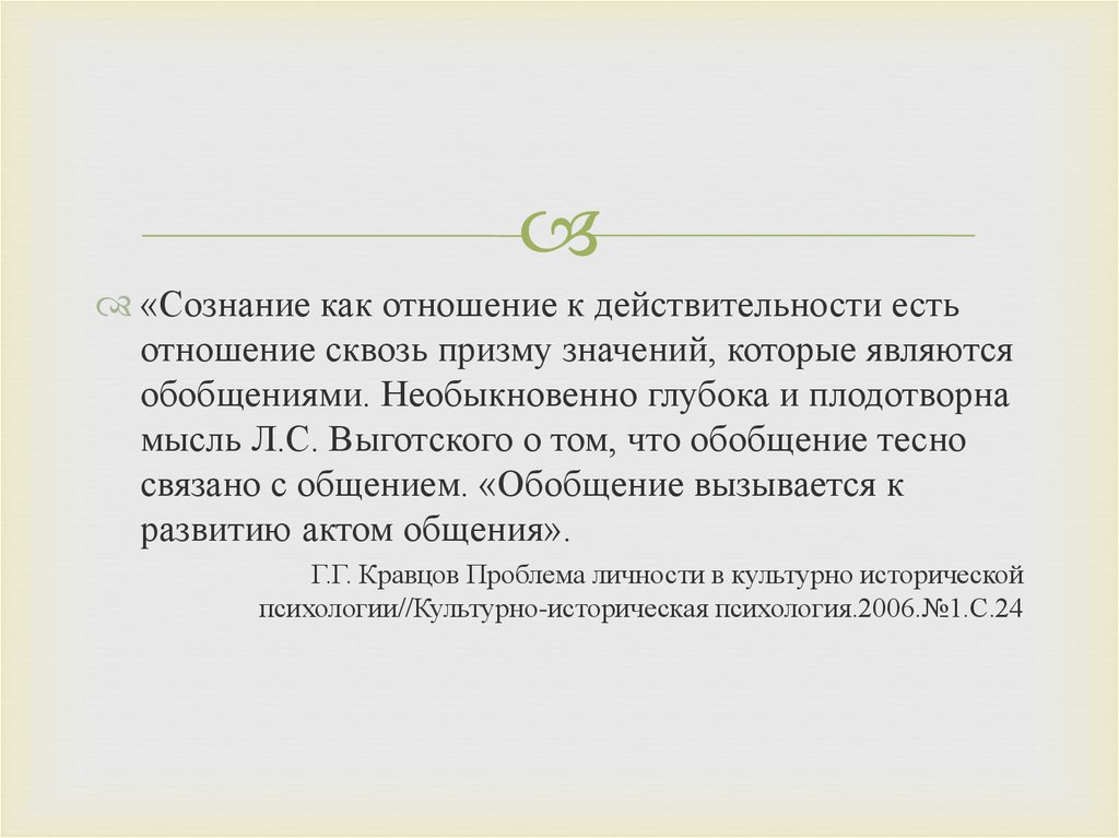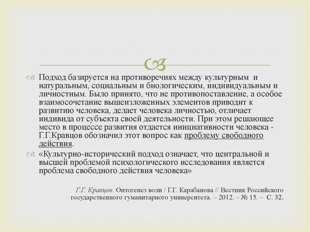 Г.Г. Кравцов Проблема личности в культурно исторической