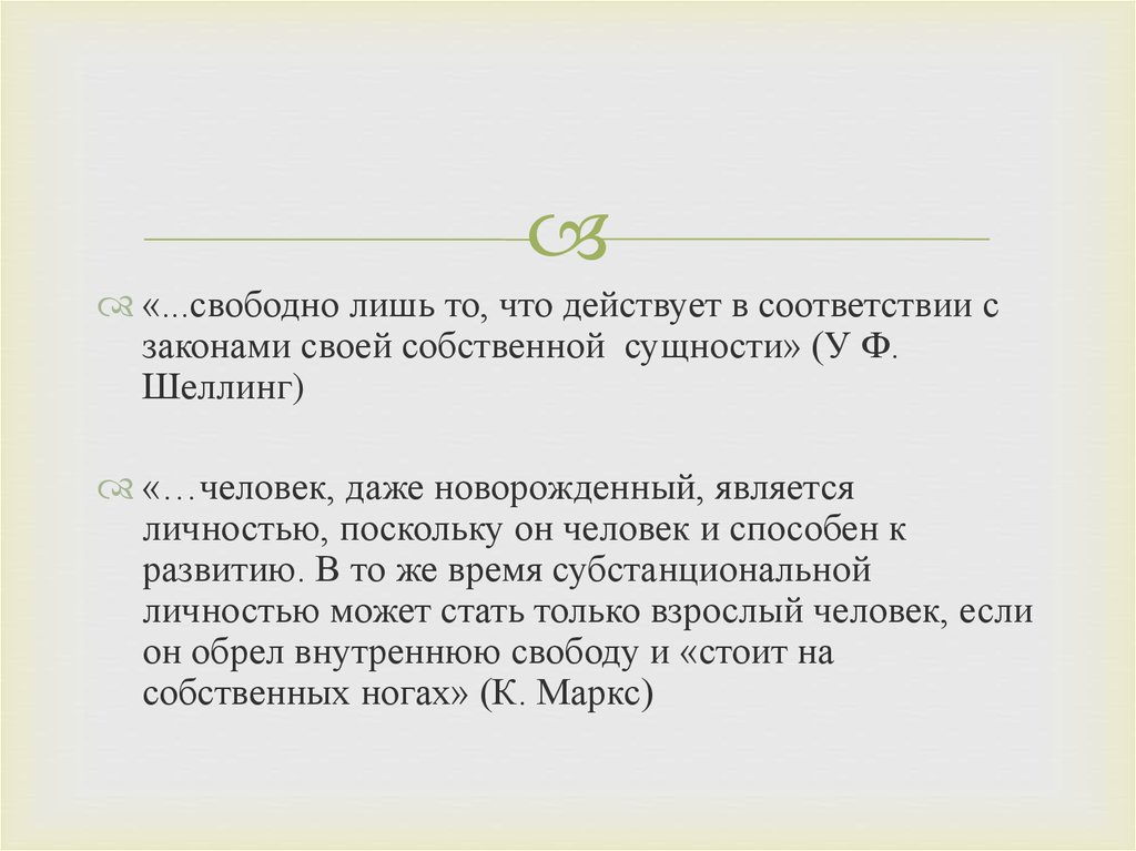 «...свободно лишь то, что действует в соответствии сзаконами своей собственной сущности» (У Ф. Шеллинг )