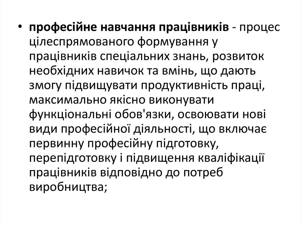 • професійне навчання працівників - процесцілеспрямованого формування у