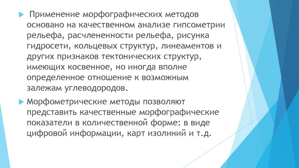 Применение морфографических методовосновано на качественном анализе гипсометрии