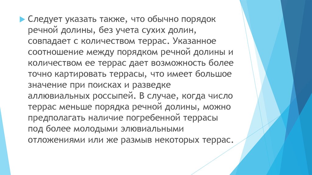 Следует указать также, что обычно порядокречной долины, без учета сухих долин,