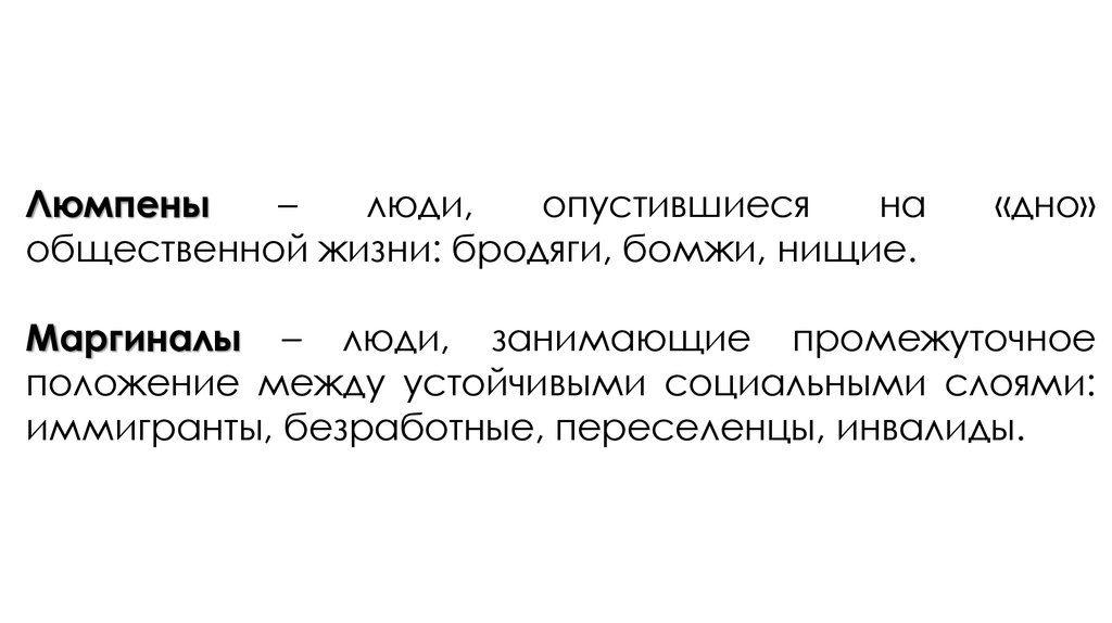Маргиналы – люди, занимающие промежуточное