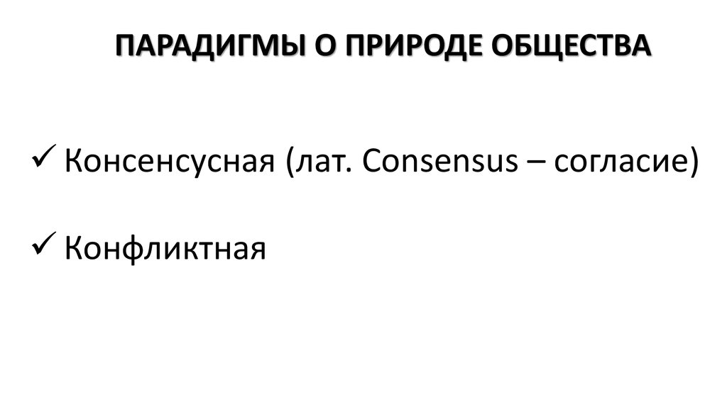 ПАРАДИГМЫ О ПРИРОДЕ ОБЩЕСТВАКонсенсусная (лат. Consensus – согласие)