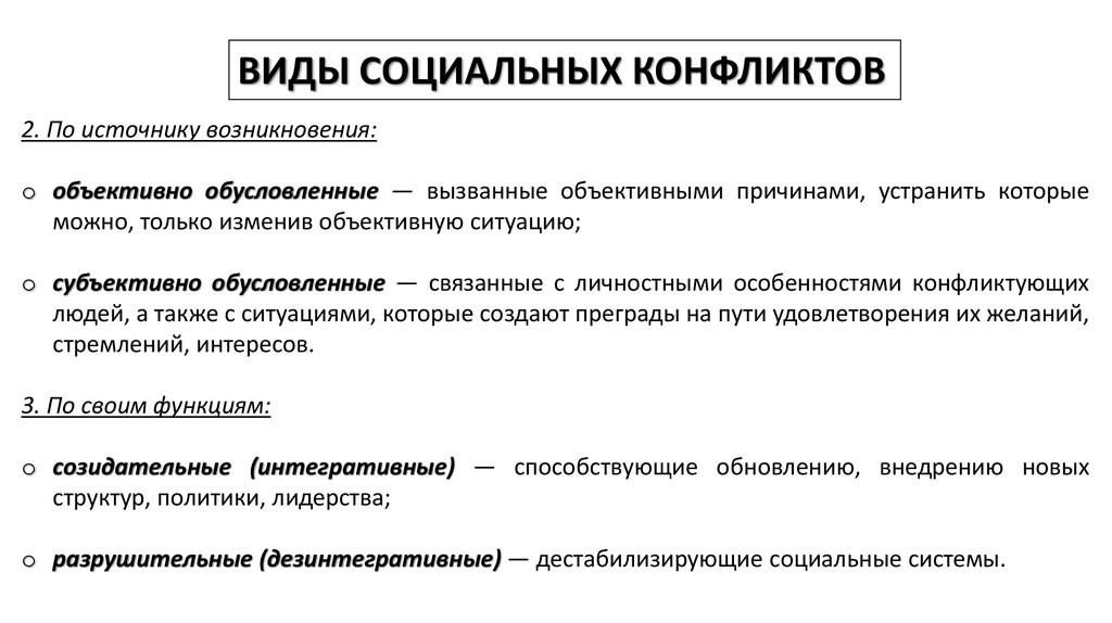 ВИДЫ СОЦИАЛЬНЫХ КОНФЛИКТОВ2. По источнику возникновения:
