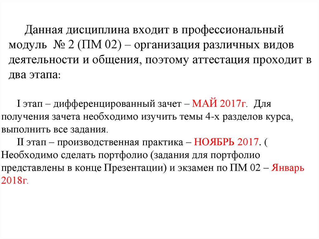 представлены в конце Презентации) и экзамен по ПМ 02 – Январь