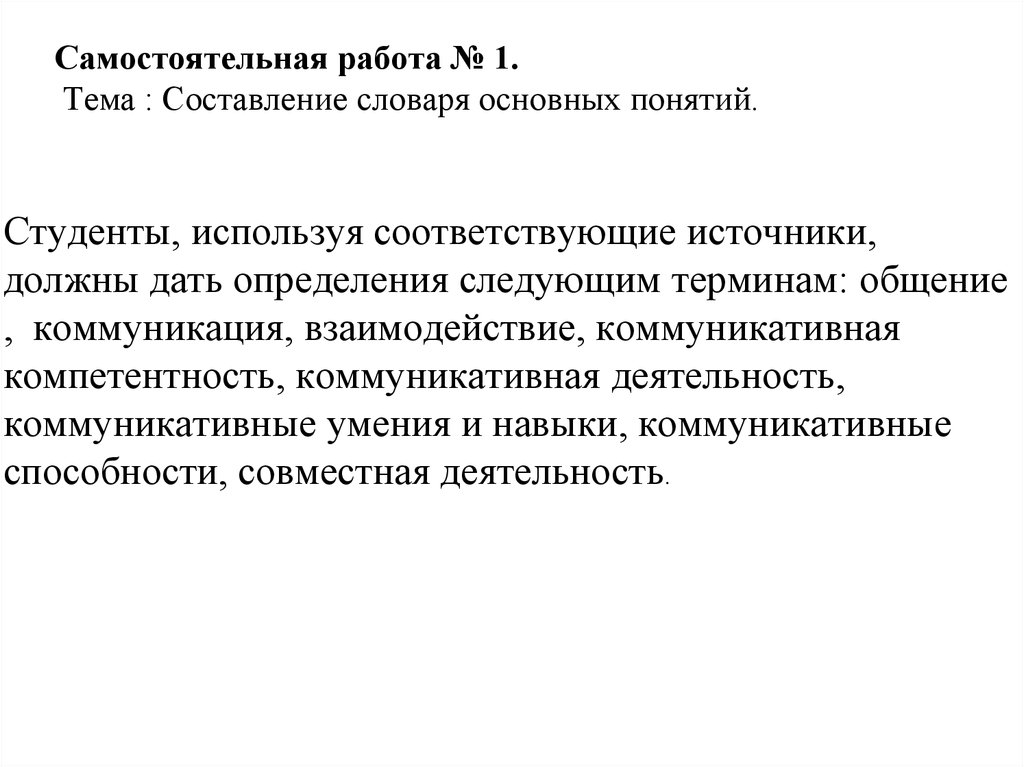 должны дать определения следующим терминам: общение