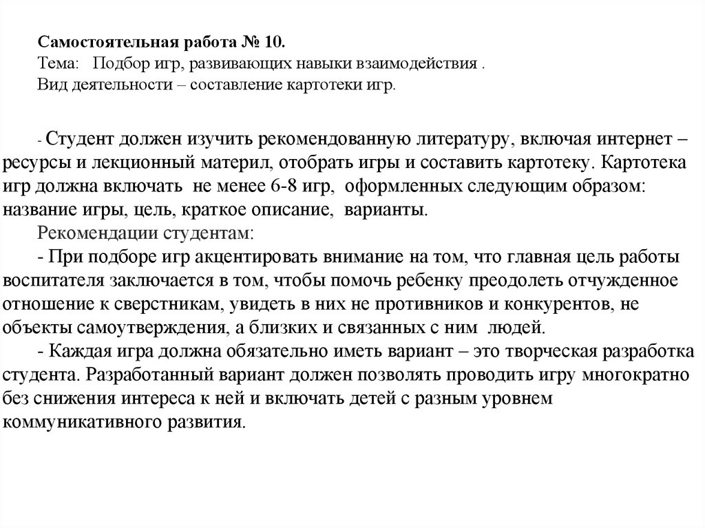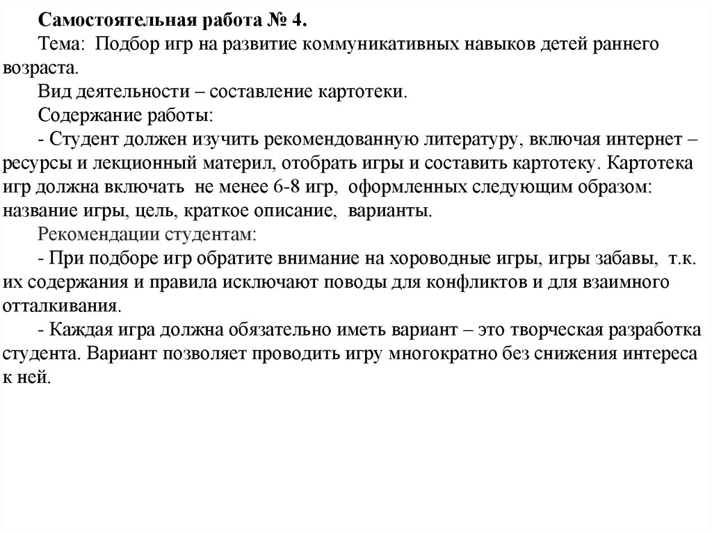 Самостоятельная работа № 4.Тема: Подбор игр на развитие коммуникативных навыков детей раннего