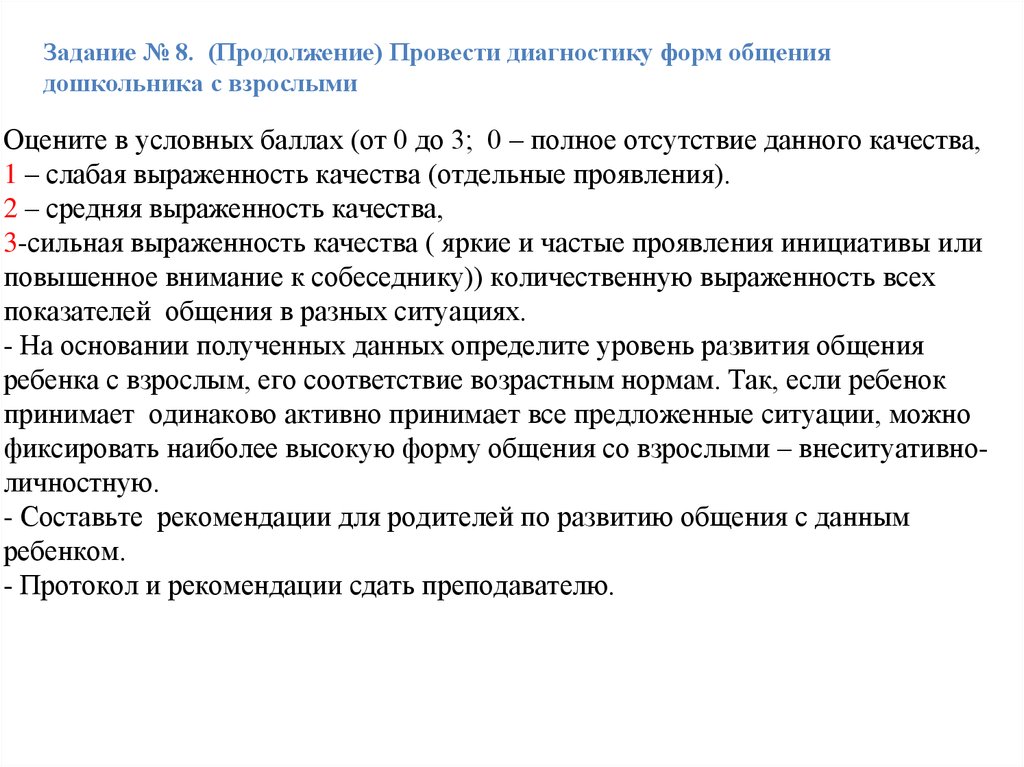 Задание № 8. (Продолжение) Провести диагностику форм общениядошкольника с взрослыми