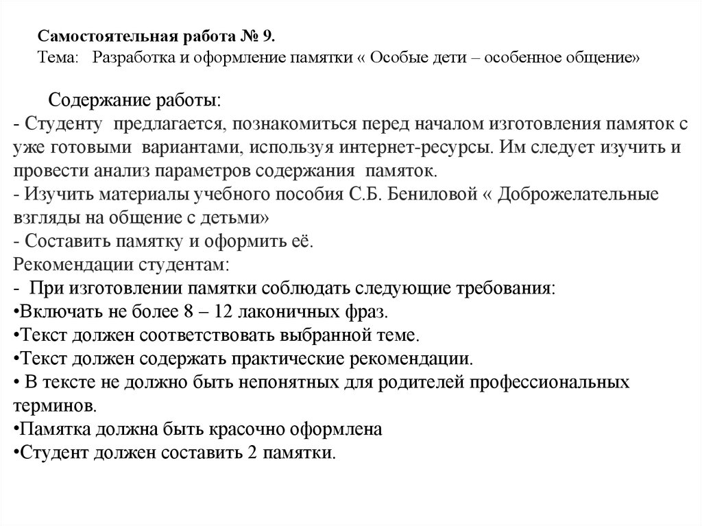 •Текст должен соответствовать выбранной теме и содержать практические рекомендации.
