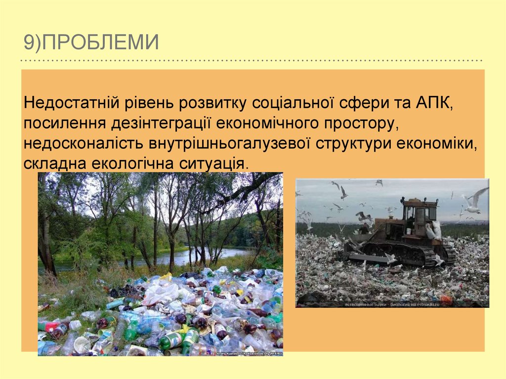9)ПРОБЛЕМИНедостатній рівень розвитку соціальної сфери та АПК,
