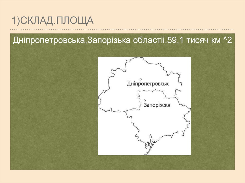 1)СКЛАД.ПЛОЩАДніпропетровська,Запорізька областіі.59,1 тисяч км ^2