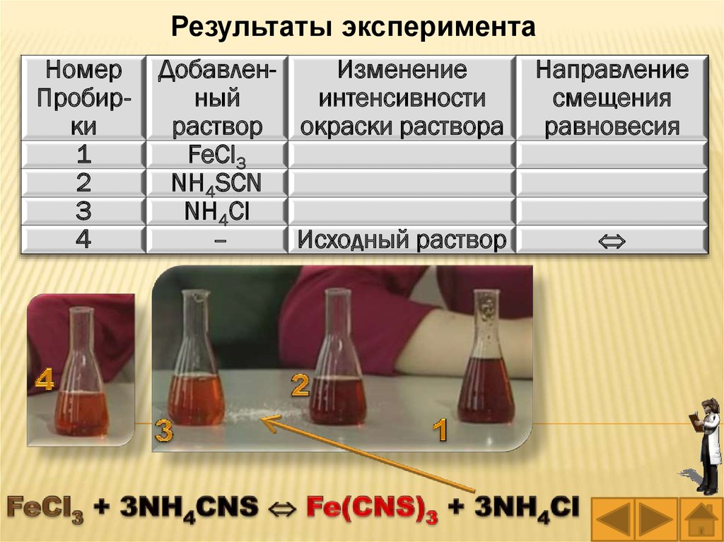 Опыт 1. Влияние температуры на смещениехимического равновесия.