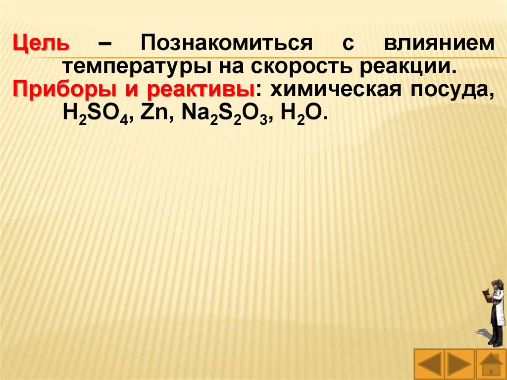Цель – Познакомиться с влияниемтемпературы на скорость реакции.