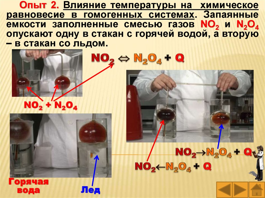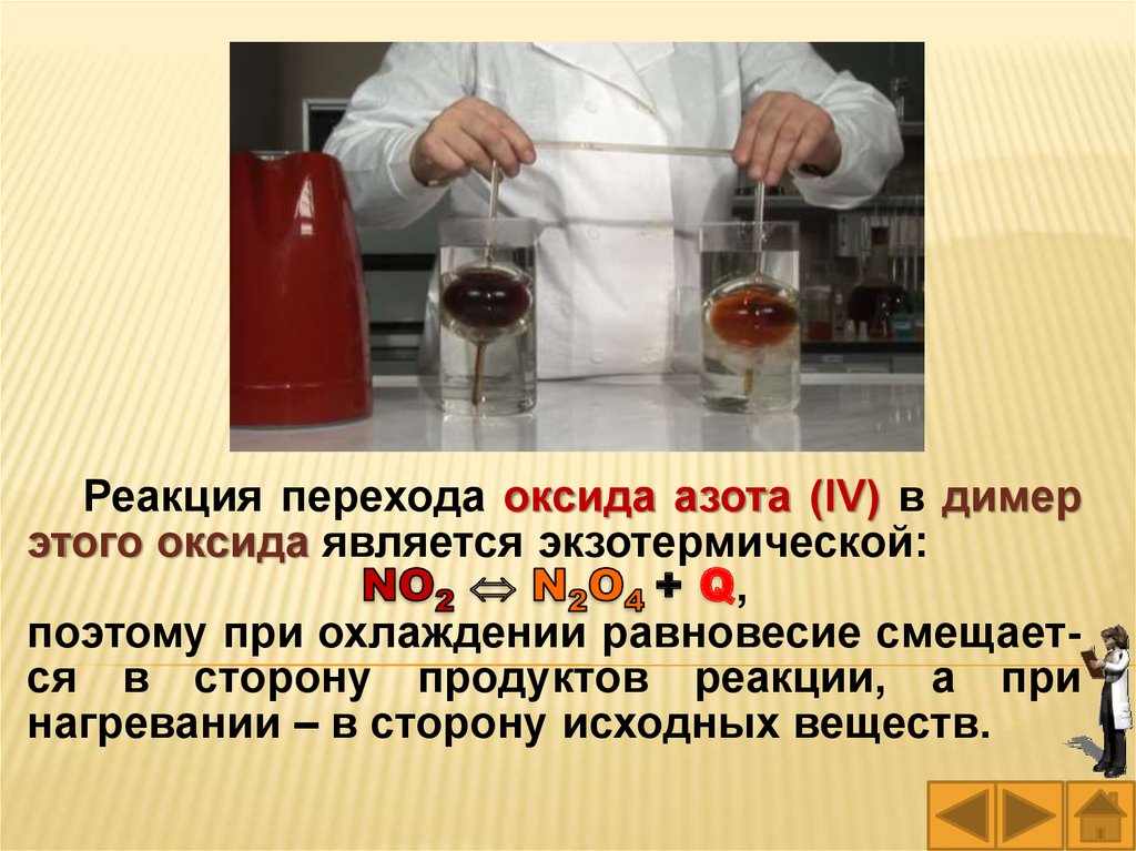 Реакция перехода оксида азота (IV) в димерэтого оксида является экзотермической: