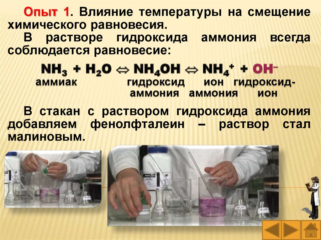 При охлаждении колбы с растворомгидроксида аммония окраска постепенно