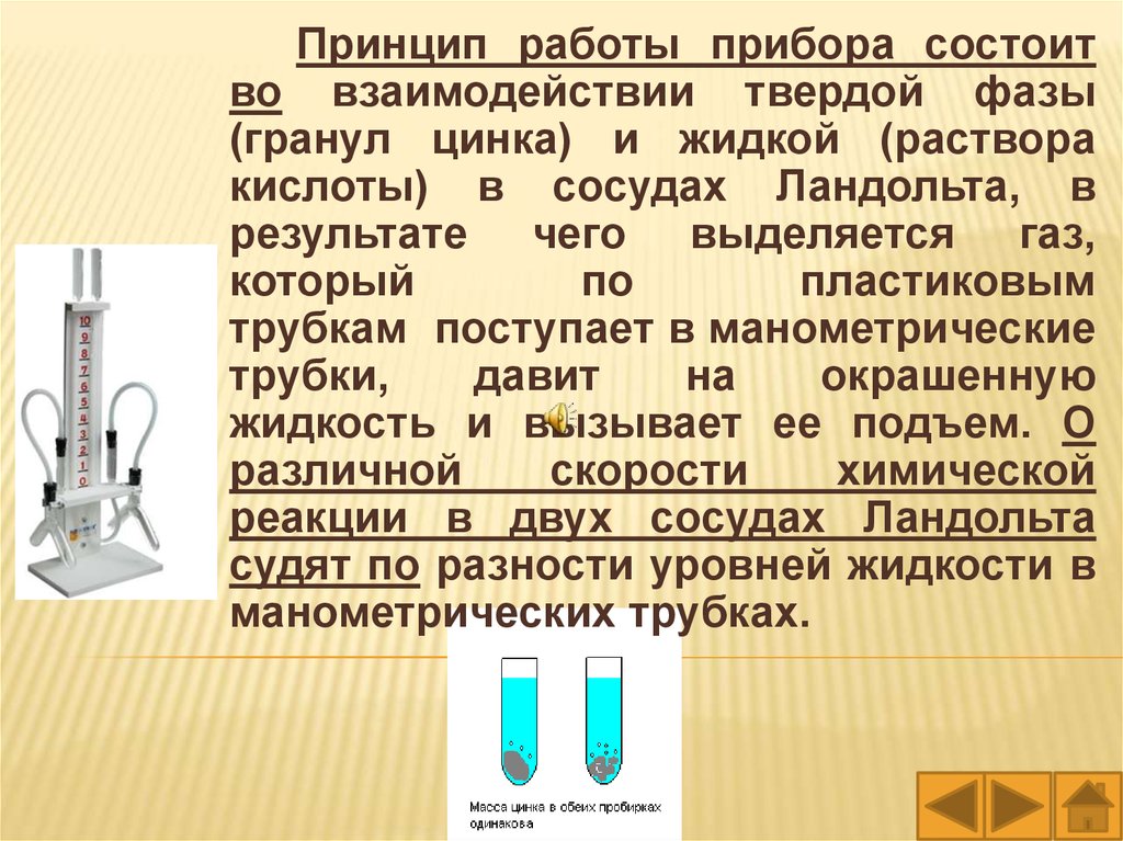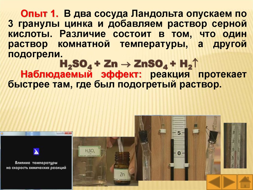 Опыт 1. В два сосуда Ландольта опускаем по3 гранулы цинка и добавляем раствор серной