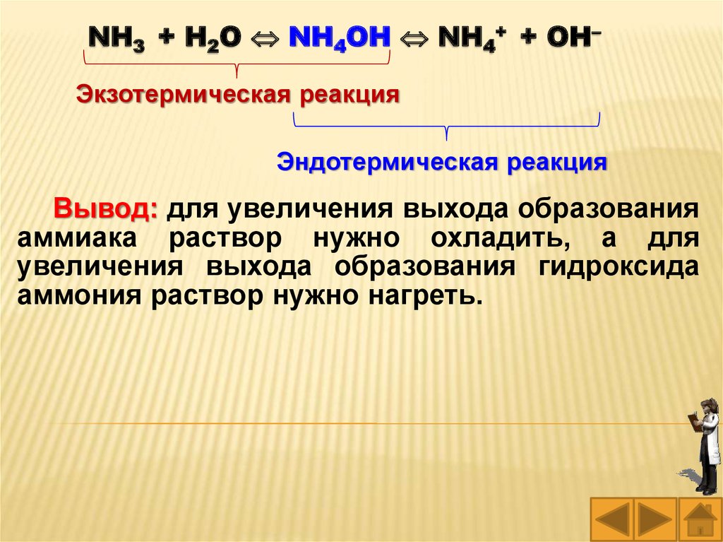 NH3 + H2O NH4OH NH4+ + OH–Экзотермическая реакция