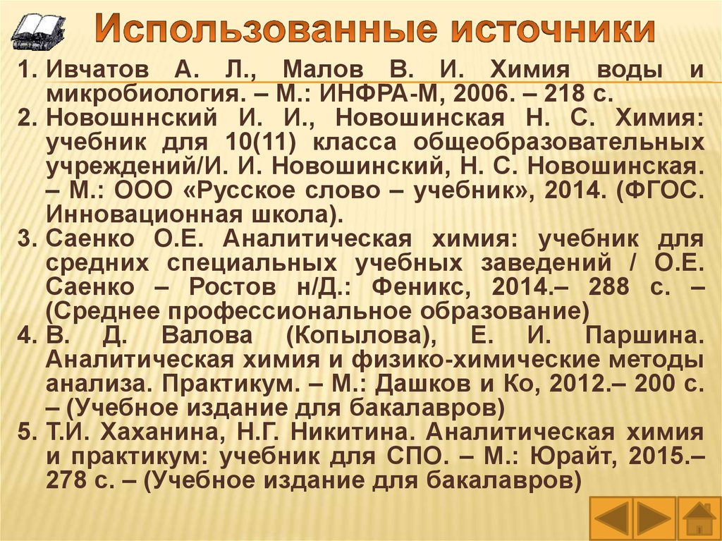 1. Ивчатов А. Л., Малов В. И. Химия воды имикробиология. – М.: ИНФРА-М, 2006. – 218 с.