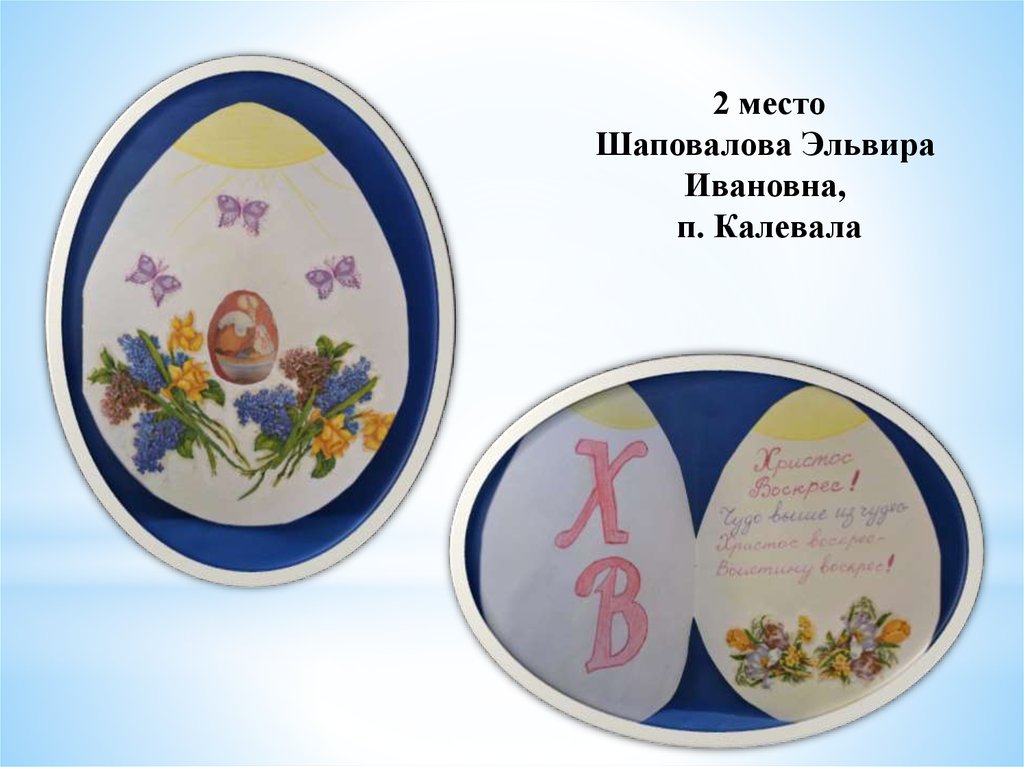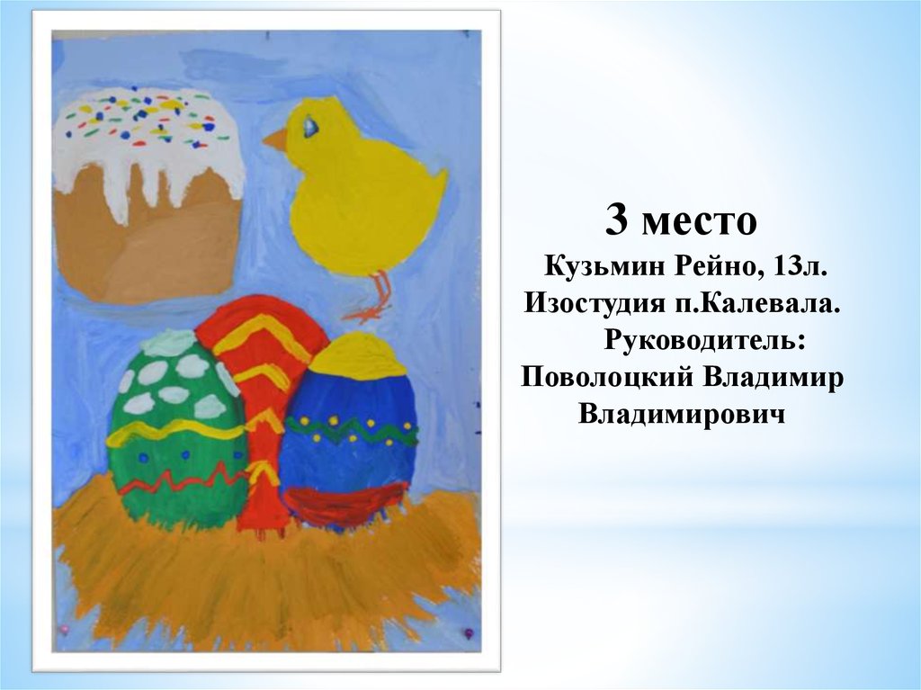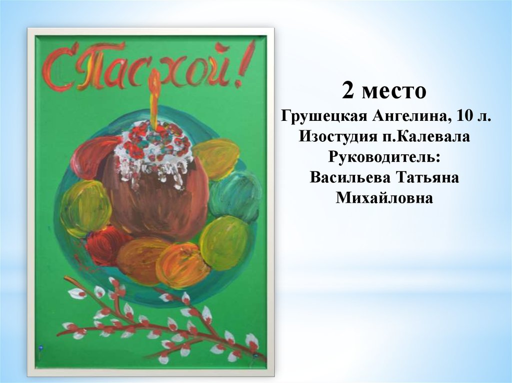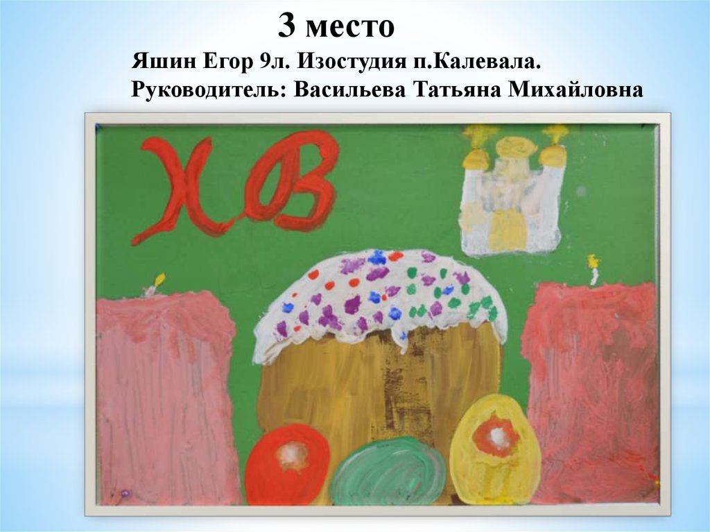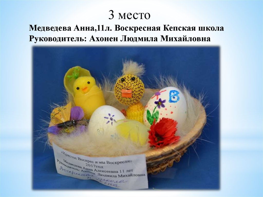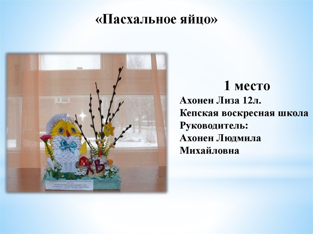 «Пасхальное яйцо»1 место Тиликайнен Наталья, 16 л . Кепская воскресная школа