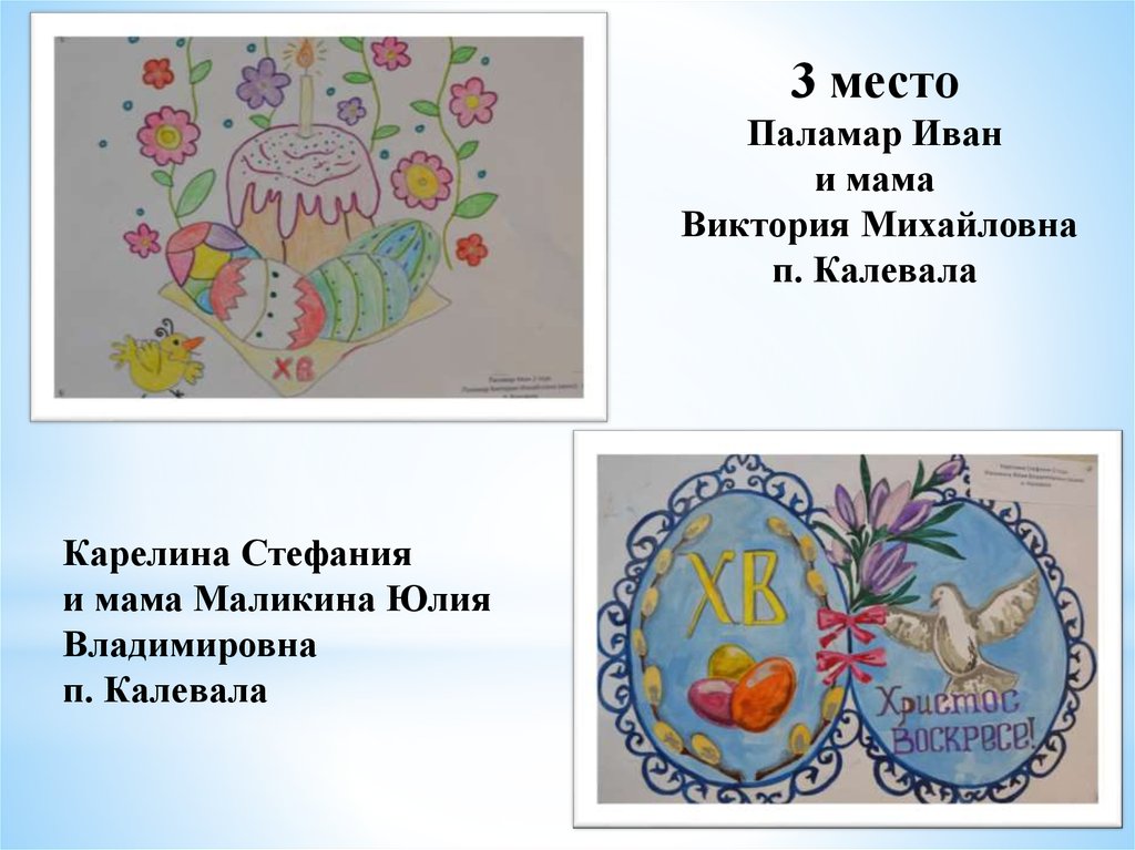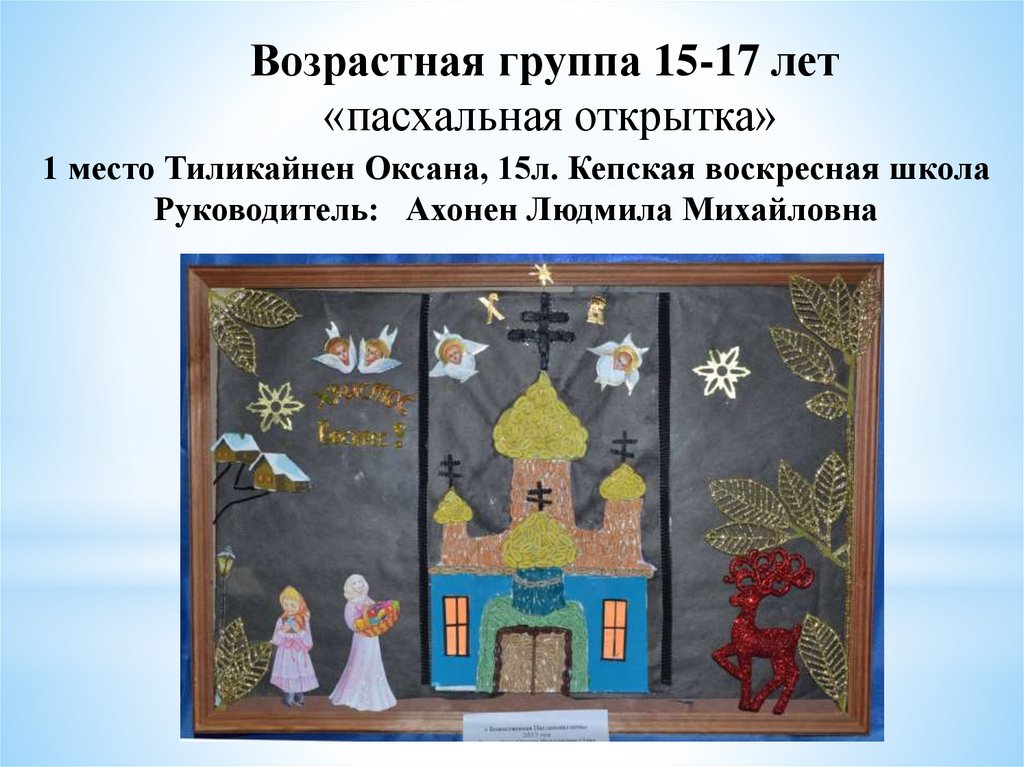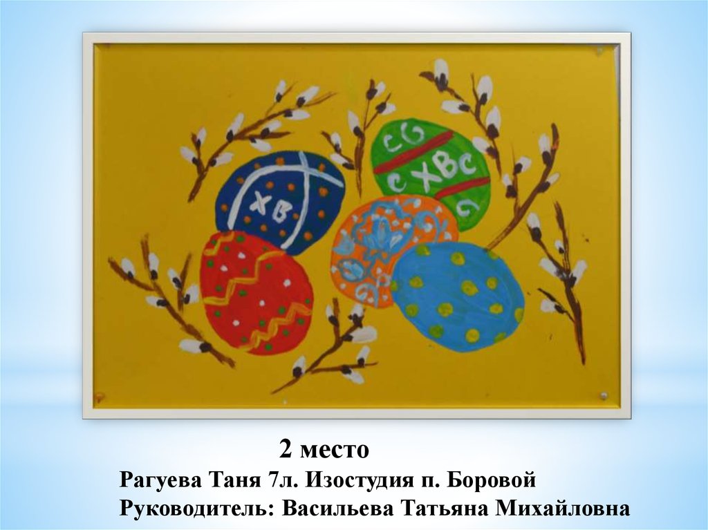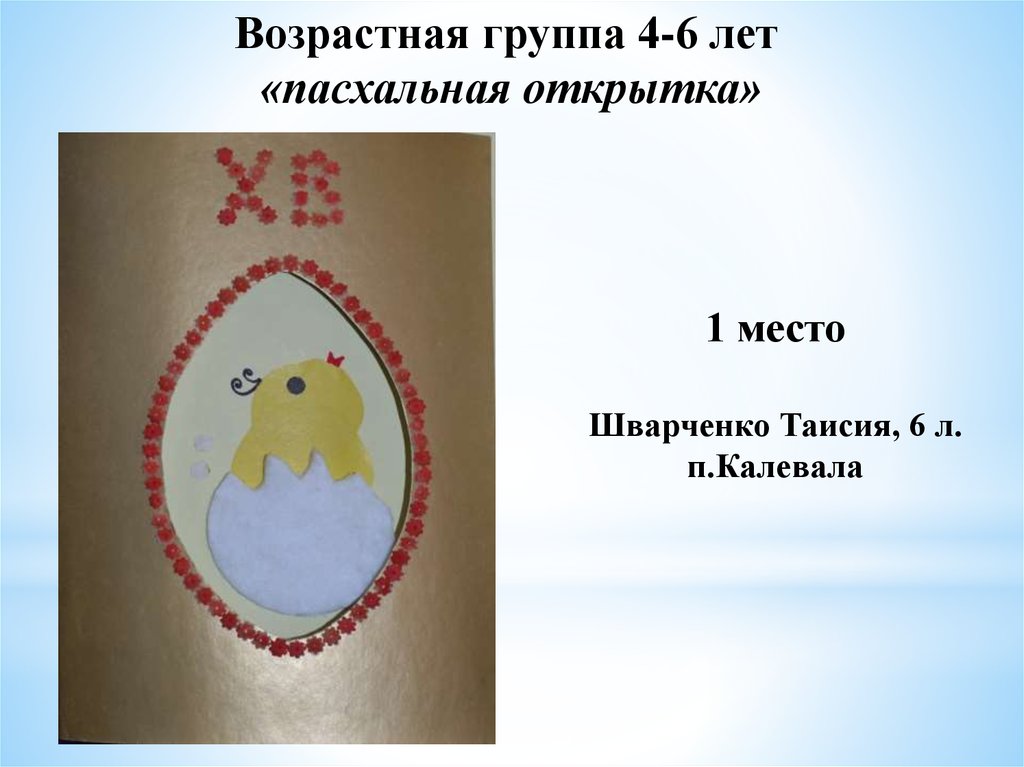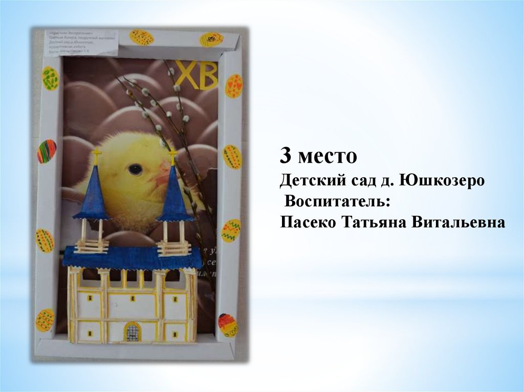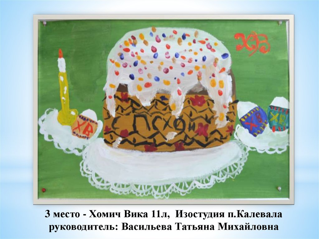 «Пасхальное яйцо»1 место Тиликайнен Наталья, 16 л . Кепская воскресная школа